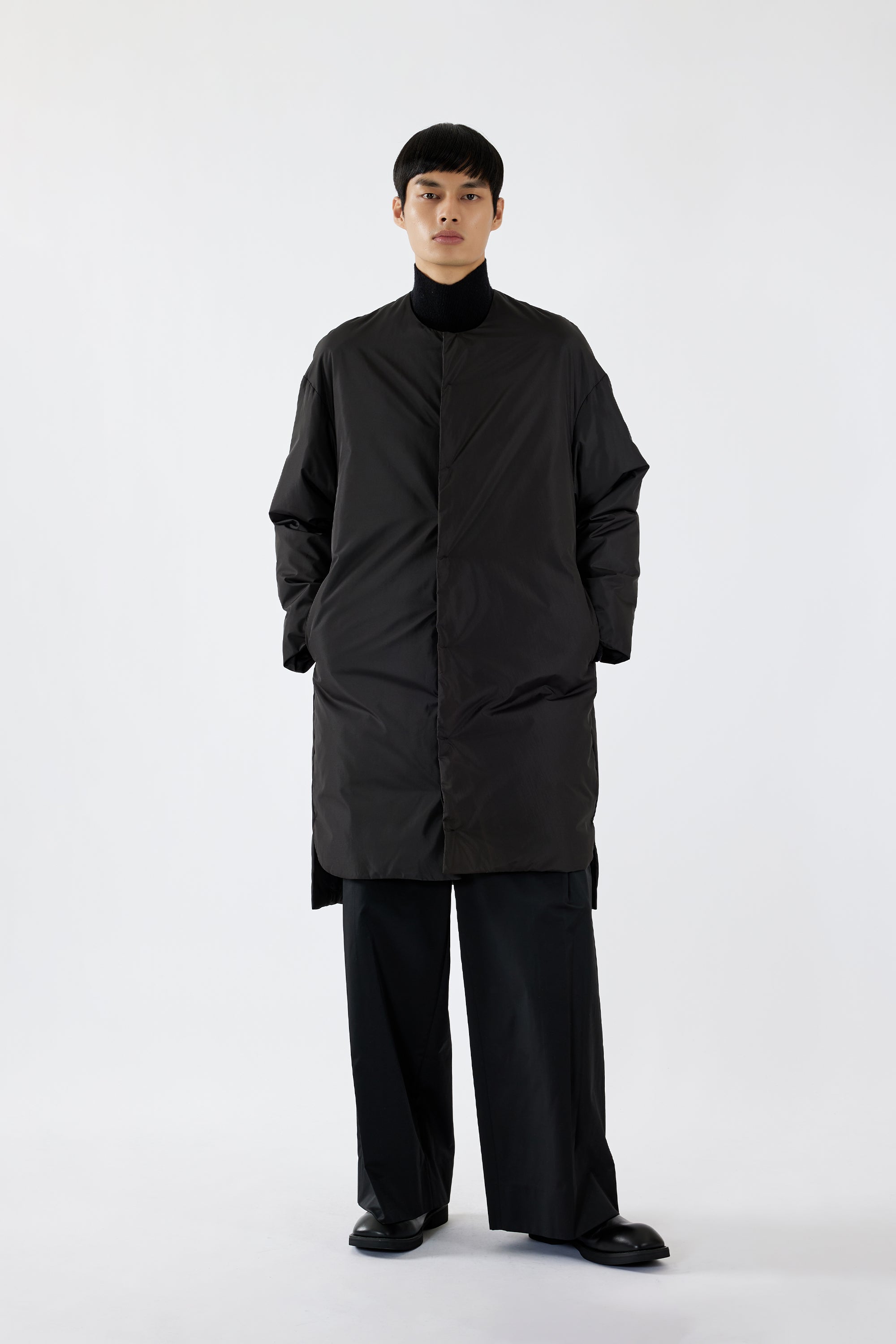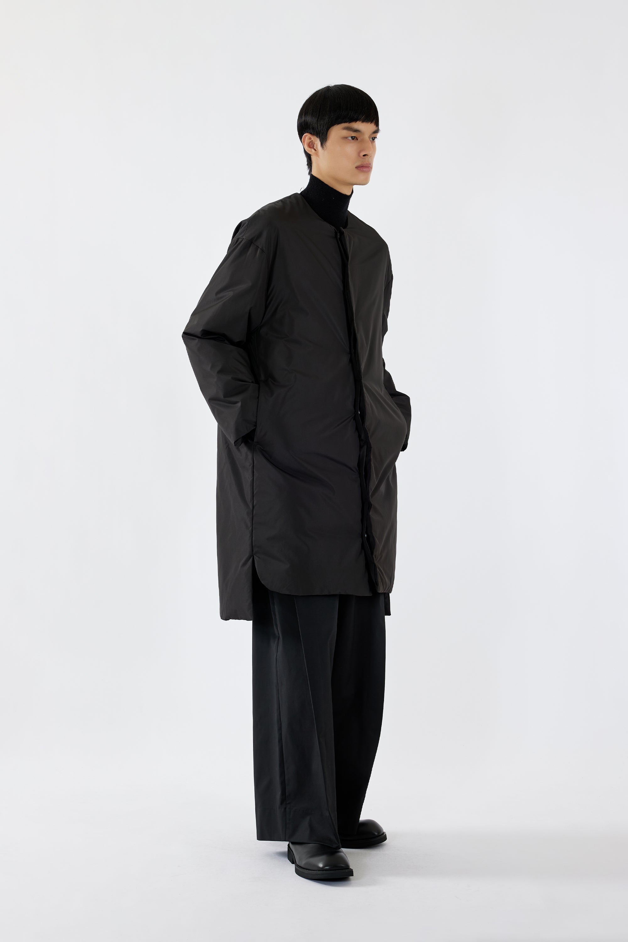 Do not tumble dry to prevent shrinkage. It is recommended to turn the garment inside out and wash it in a delicate mesh laundry bag to prevent pilling and maintain the garment's integrity. Soaking time should not be excessive. After washing, hang the garment to dry in a well-ventilated area, avoiding direct sunlight. When ironing, use a low temperature and a pressing cloth.