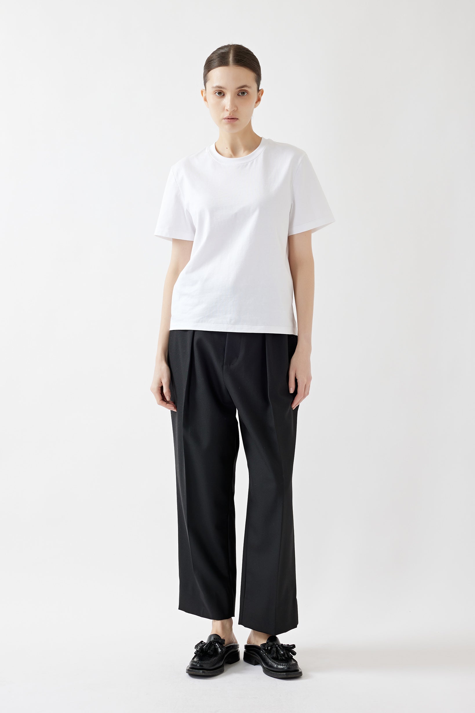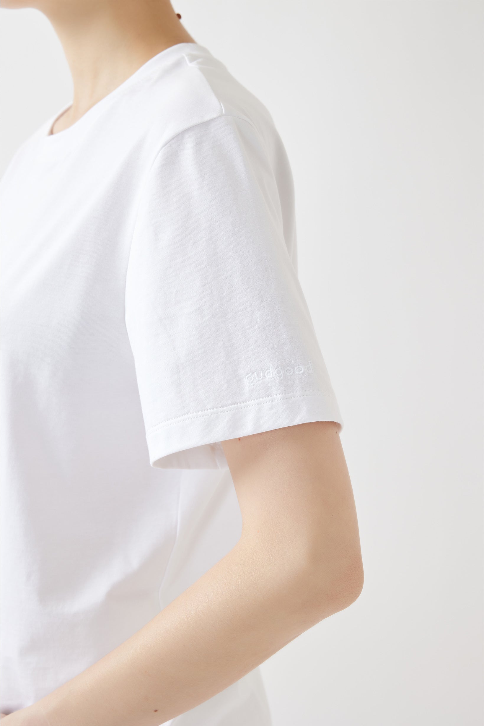 A timeless essential, this classic white crew-neck T-shirt is crafted with refined attention to detail for an elevated everyday look. Designed with a clean silhouette and subtle tailoring, it offers a relaxed yet polished fit that complements both casual and sophisticated styling. Soft to the touch with a smooth finish, this versatile piece transitions effortlessly from day to night, embodying understated elegance.