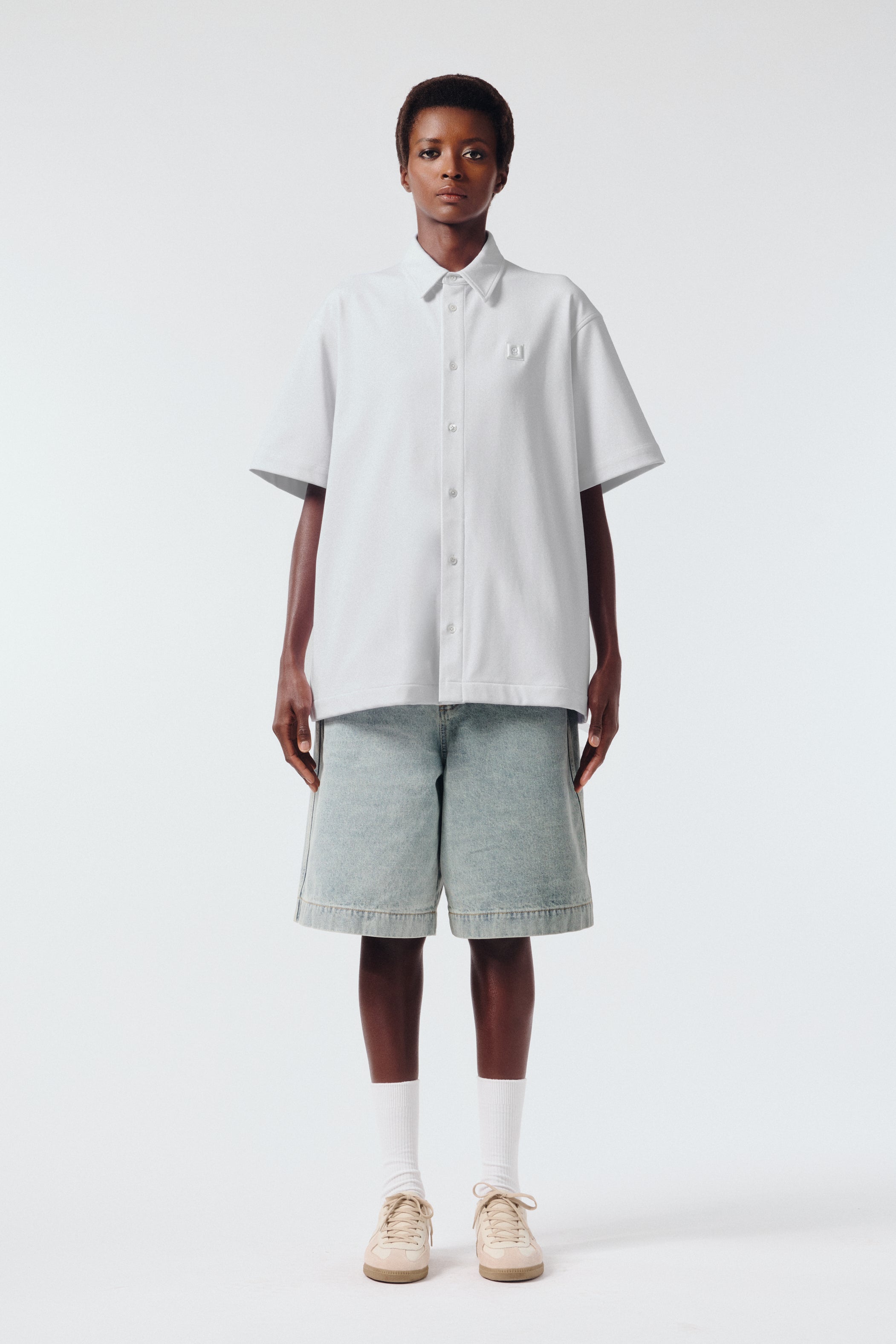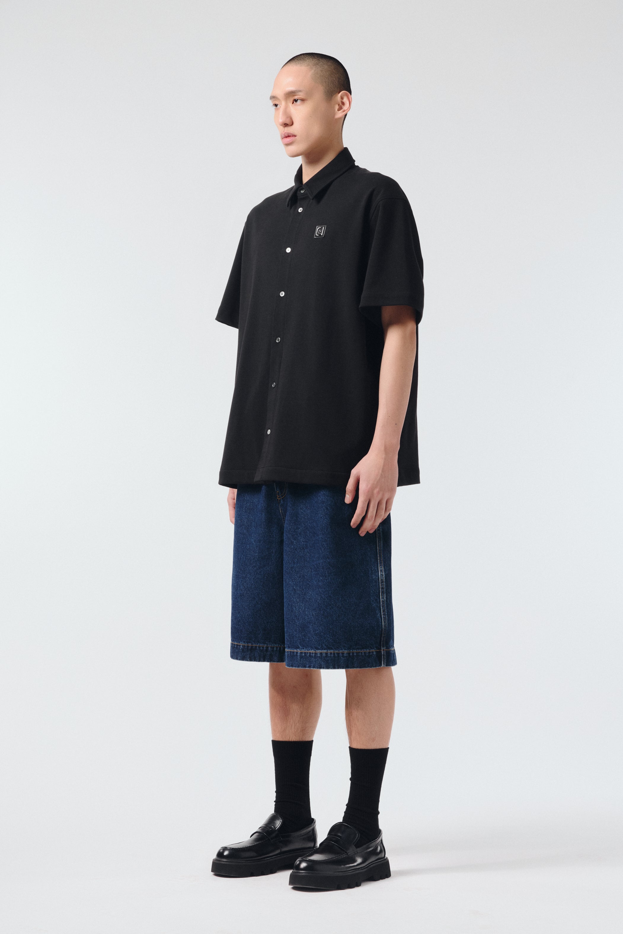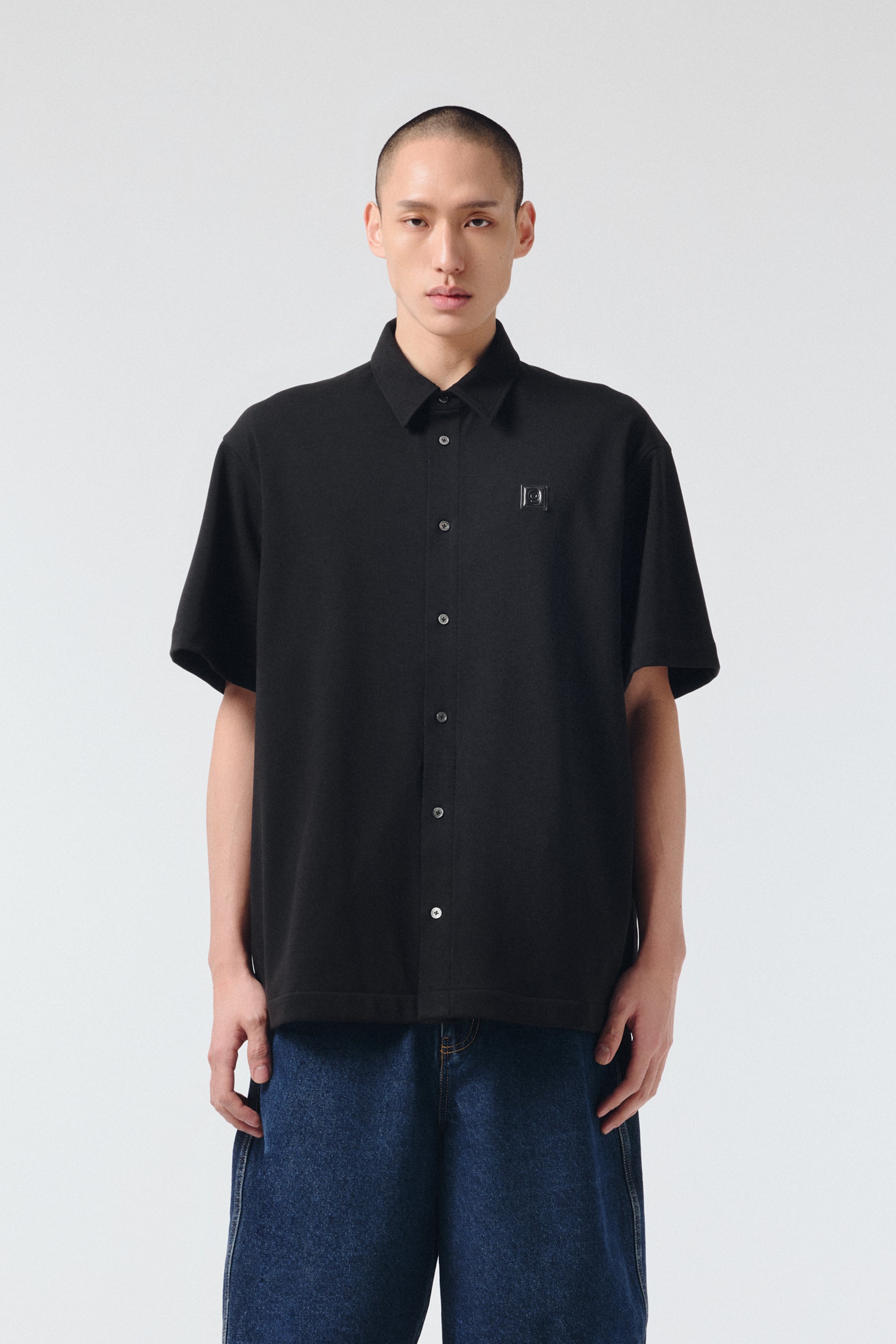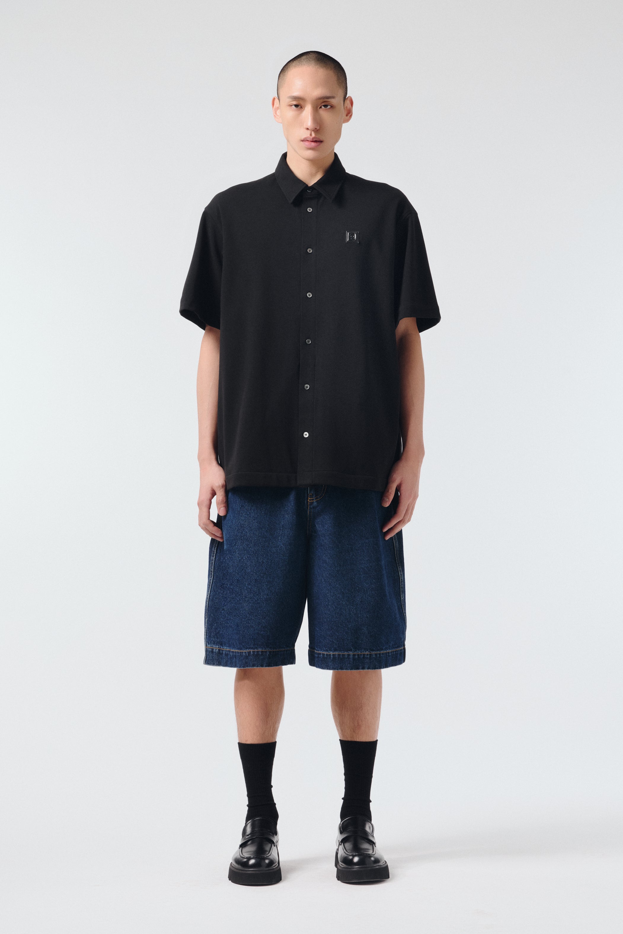 탑다운 칼라 로고 자수 코튼 셔츠