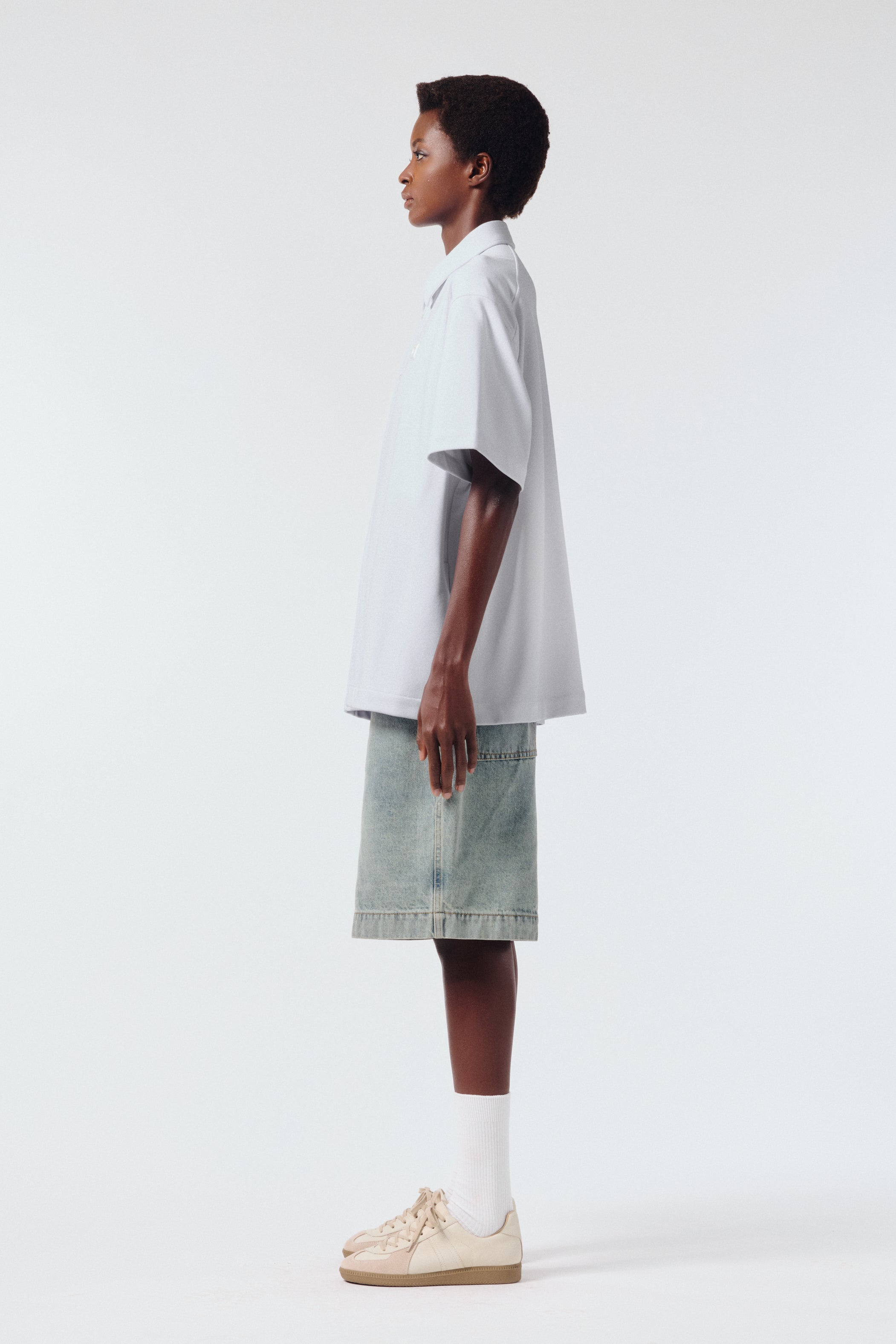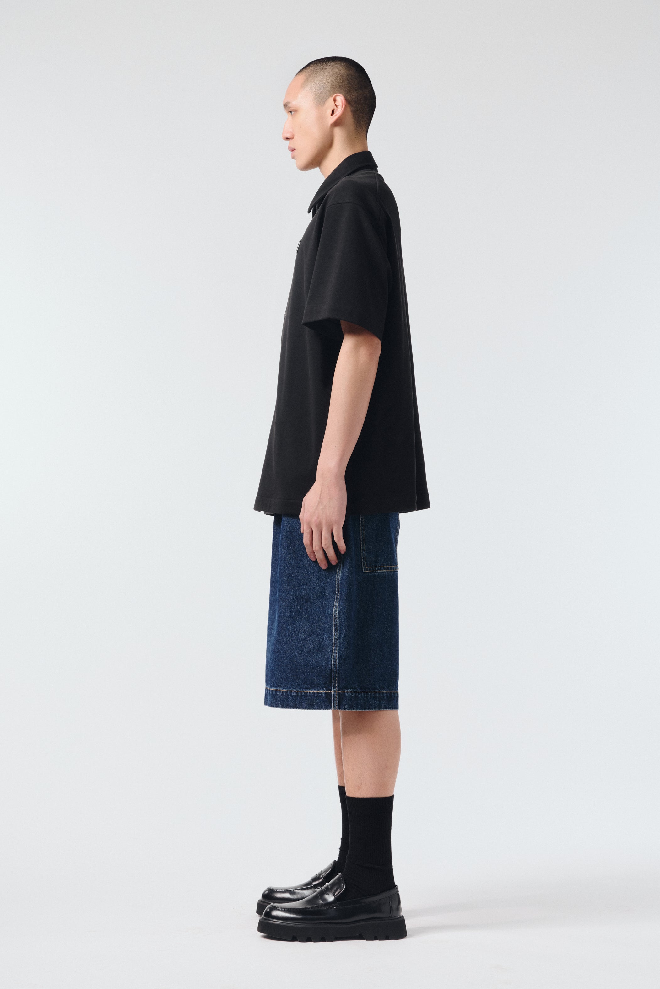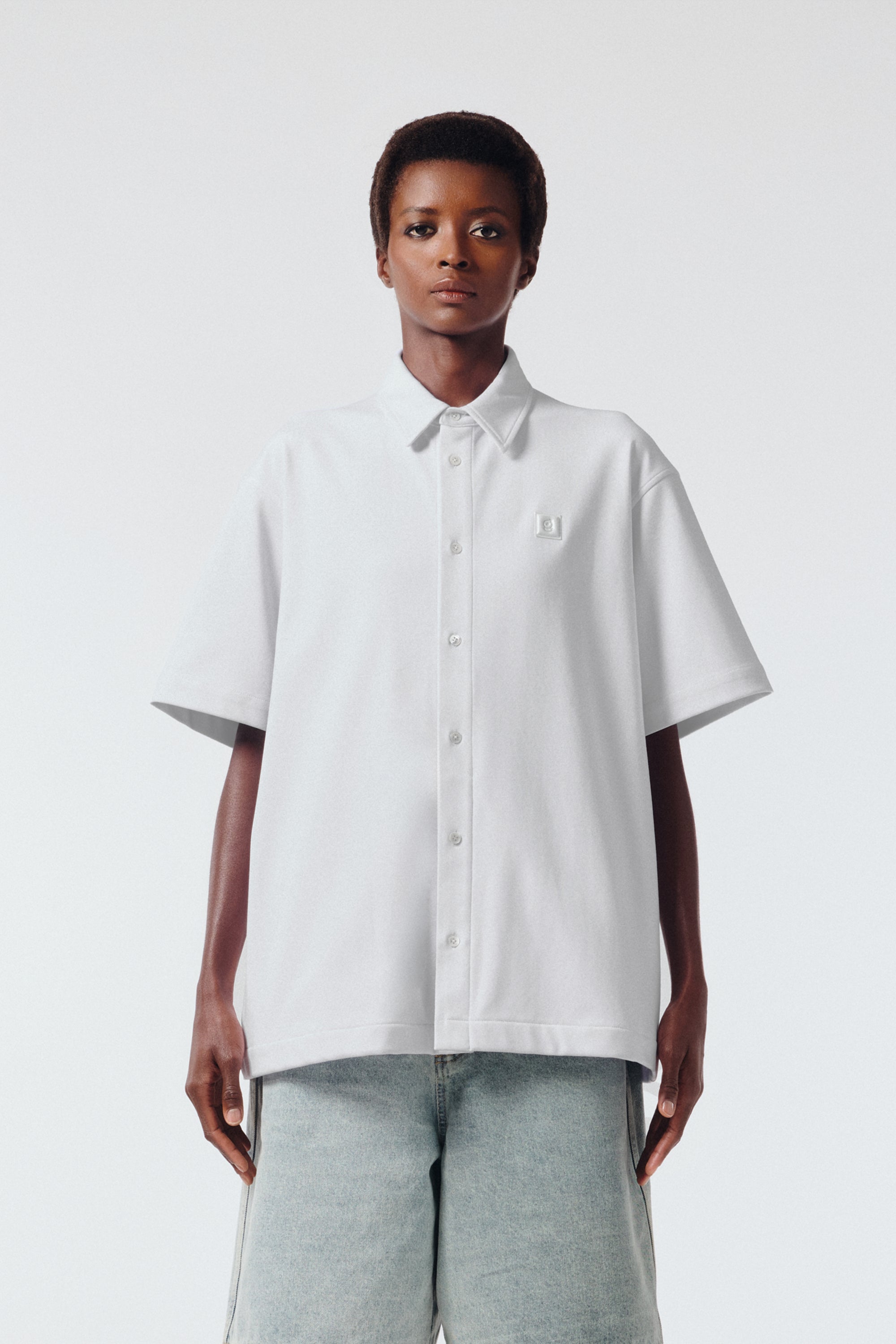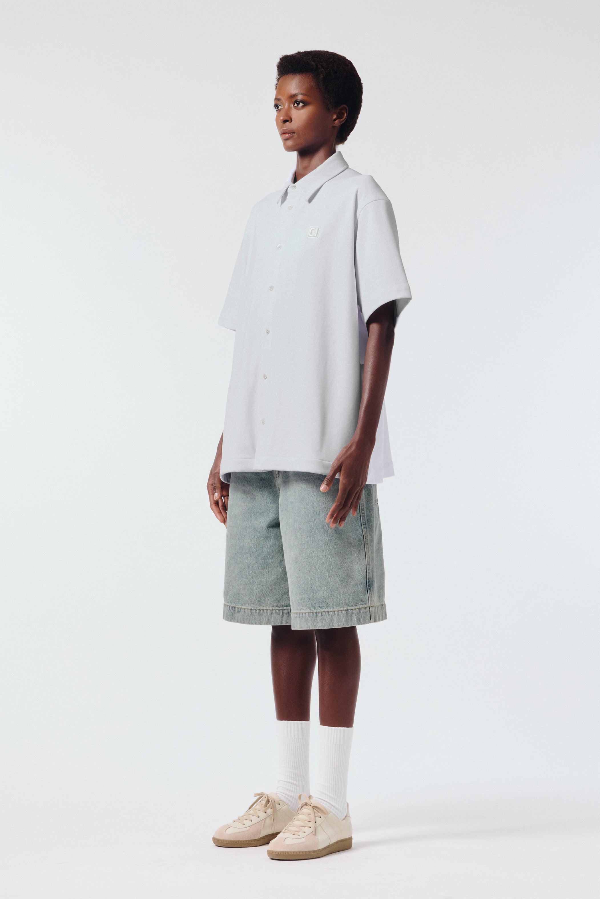 탑다운 칼라 로고 자수 코튼 셔츠